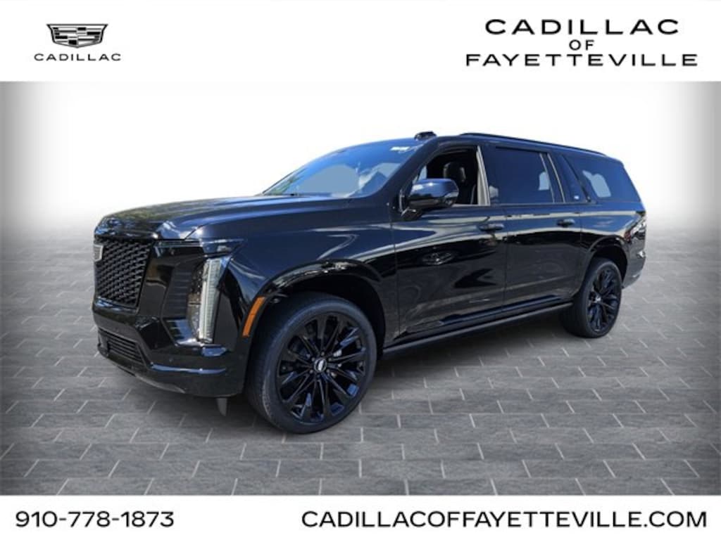 Black Raven 2025 Cadillac Escalade ESV Sport Platinum 4WD 10-Speed Automatic 6.2L V8 INCLUDES WARRANTY, 4WD, 2-Presets Memory For Driver Seat Adjuster, 2-Speed Active Transfer Case, 3.23 Axle Ratio, 3rd row seats: split-bench, 4-Way Power Driver Lumbar Seat Adjuster, 4-Way Power Front Passenger Lumbar Seat Adjuster, 4-Wheel Disc Brakes, 8-Way Power Driver Seat Adjuster, 8-Way Power Front Passenger Seat Adjuster, ABS brakes, Adaptive suspension, Air Conditioning, Air Ride Adaptive Suspension, AKG Studio Reference 36-Speaker Audio System, Alloy wheels, AM/FM radio: SiriusXM with 360L, Apple CarPlay/Android Auto, Audio memory, Auto High-beam Headlights, Auto tilt-away steering wheel, Auto-dimming door mirrors, Automatic temperature control, Black Illuminated Cadillac Emblem (LPO), Blind Zone Steering Assist w/Trailering, Brake assist, Bumpers: body-color, Compass, Cooled Console w/Covered Storage, Delay-off headlights, Door Lock & Latch Shields, Driver door bin, Driver Seat Power Bolster, Driver vanity mirror, Dual front impact airbags, Dual front side impact airbags, Electronic Limited-Slip Differential, Electronic Stability Control, Emergency communication system: OnStar Services capable, Exterior Parking Camera Rear, Floor Console w/Covered Storage, Four wheel independent suspension, Front anti-roll bar, Front Auxiliary 12-volt Power Outlet, Front Bucket Seats, Front Center Armrest w/Storage, Front dual zone A/C, Front Passenger Seat Power Bolster, Front reading lights, Full Semi-Aniline Leather Seats w/Mini-Chevron, Fully automatic headlights, Garage door transmitter, Genuine wood console insert, Genuine wood dashboard insert, Genuine wood door panel insert, Glass Breakage Sensor, Gloss Black Escalade Nameplate (LPO), Headphones, Heads-Up Display, Heated & Ventilated Driver & Front Passenger Seats, Heated door mirrors, Heated Driver & Front Passenger Seats, Heated front seats, Heated rear seats, Heated steering wheel, Hitch Guidance w/Hitch View, Illuminated entry, Illuminating Front & Rear Sill Plates, Integrated Trailer Brake Controller, Knee airbag, Lane Departure Warning System, Leather steering wheel, Low tire pressure warning, Magnetic Ride Control Suspension, Memory seat, Navigation System, Next Generation Active Noise Cancellation, Night Vision, Night vision lights, Occupant sensing airbag, Onyx Package (LPO), Outside temperature display, Overhead airbag, Overhead console, Panic alarm, Passenger door bin, Passenger vanity mirror, Platinum Interior Trim, Power door mirrors, Power driver seat, Power Liftgate, Power Lumbar Massage Driver Seat, Power Lumbar Massage Front Passenger Seat, Power moonroof, Power Open/Close Doors, Power Panoramic Tilt-Sliding Sunroof, Power passenger seat, Power steering, Power windows, Power-Retractable Assist Steps, Preferred Equipment Group 1SH, Radio data system, Radio: Infotainment Experience, Rain sensing wipers, Rear air conditioning, Rear anti-roll bar, Rear audio controls, Rear reading lights, Rear Seat Entertainment System, Rear window defroster, Rear window wiper, Reconfigurable Full-Color Head-Up Display, Remote keyless entry, Security system, SiriusXM w/360L Trial Subscription, Smart Trailer Integration Indicator, Soft Closing Front & Rear Doors, Speed control, Split folding rear seat, Spoiler, Steering wheel memory, Steering wheel mounted audio controls, Tachometer, Telescoping steering wheel, Theft-Deterrent Alarm System, Tilt steering wheel, Touring Package, Traction control, Trailering App, Trailering Assist Guidelines, Trip computer, Turn signal indicator mirrors, Variably intermittent wipers, Vehicle Inclination Sensor, Vehicle Interior Movement Sensor, Ventilated front seats, Voltmeter, Wheel Locks, Wheels: 22 18-Spoke Alloy, Wheels: 24 Black Alloy (LPO), Wheels: 24 Transit, Wireless Apple CarPlay/Wireless Android Auto, 4WD.