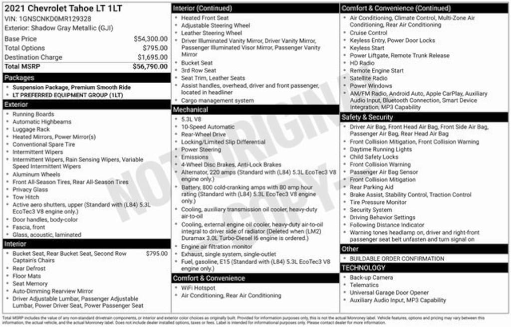 Shadow Gray Metallic 2021 Chevrolet Tahoe LTINCLUDES WARRANTY, Black Leather, 1st & 2nd Row Color-Keyed Carpeted Floor Mats, 2 USB Data Ports, Auto-Dimming Inside Rear-View Mirror, Bright Front & Rear Door Sill Plates, Color-Keyed Carpeting Floor Covering, Driver & Front Outboard Passenger Airbags, Floor Console w/Storage Area, Hands-Free Rear Power Programmable Liftgate, HD Radio, Infotainment Display, Leather-Wrapped Steering Wheel, LED Daytime Running Lamps, Memory Settings for Driver, Preferred Equipment Group 1LT, Remote Start, SiriusXM Radio w/360L, Universal Home Remote, 10-Way Power Driver & Passenger Seat Adjusters, 2nd Row Manual Bucket Seats, 3.23 Rear Axle Ratio, 3rd row seats: split-bench, 4-Wheel Disc Brakes, 9 Speakers, ABS brakes, Air Conditioning, Alloy wheels, AM/FM radio: SiriusXM with 360L, Apple CarPlay/Android Auto, Auto High-beam Headlights, Auto-dimming Rear-View mirror, Automatic temperature control, Bose 9-Speaker Stereo Audio System Feature, Brake assist, Bumpers: body-color, Compass, Delay-off headlights, Driver door bin, Driver vanity mirror, Dual front impact airbags, Dual front side impact airbags, Electronic Stability Control, Emergency communication system: OnStar and Chevrolet connected services capable, Four wheel independent suspension, Front anti-roll bar, Front Bucket Seats, Front Center Armrest, Front dual zone A/C, Front High-Back Reclining Bucket Seats, Front reading lights, Fully automatic headlights, Garage door transmitter, Heated door mirrors, Heated Driver & Front Passenger Seats, Heated front seats, Illuminated entry, Leather Seat Trim, Leather steering wheel, Low tire pressure warning, Memory seat, Occupant sensing airbag, Outside temperature display, Overhead airbag, Overhead console, Panic alarm, Passenger door bin, Passenger vanity mirror, Power door mirrors, Power driver seat, Power Liftgate, Power passenger seat, Power steering, Power windows, Premium audio system: Chevrolet Infotainment 3, Premium Smooth Ride Suspension, Radio: Chevrolet Infotainment 3 Plus System, Rain sensing wipers, Rear air conditioning, Rear anti-roll bar, Rear reading lights, Rear seat center armrest, Rear window defroster, Rear window wiper, Remote keyless entry, Roof rack: rails only, Security system, Speed control, Speed-sensing steering, Split folding rear seat, Spoiler, Steering wheel mounted audio controls, Tachometer, Telescoping steering wheel, Tilt steering wheel, Traction control, Trip computer, Variably intermittent wipers, Voltmeter, Wheels: 18 x 8.5 Bright Silver Painted Aluminum, Black Leather, 1st & 2nd Row Color-Keyed Carpeted Floor Mats, 2 USB Data Ports, Auto-Dimming Inside Rear-View Mirror, Bright Front & Rear Door Sill Plates, Color-Keyed Carpeting Floor Covering, Driver & Front Outboard Passenger Airbags, Floor Console w/Storage Area, Hands-Free Rear Power Programmable Liftgate, HD Radio, Infotainment Display, Leather-Wrapped Steering Wheel, LED Daytime Running Lamps, Memory Settings for Driver, Preferred Equipment Group 1LT, Remote Start, SiriusXM Radio w/360L, Universal Home Remote.Clean CARFAX.Why Choose Cadillac of Fayetteville for Your Next New or Pre-Owned Cadillac Purchase:Unparalleled Cadillac Luxury: Whether new or pre-owned, our Cadillac vehicles offer unmatched luxury and sophistication, elevating your driving experience.Tailored Customer Experience: At Cadillac of Fayetteville, we prioritize your satisfaction, providing a personalized and seamless car-buying journey for both new and pre-owned vehicles.Certified Quality: Each vehicle in our inventory, whether new or pre-owned, undergoes rigorous inspection, ensuring exceptional quality and reliability on the road.Extended Peace of Mind: Drive with confidence knowing that every purchase, whether new or pre-owned, includes a minimum 3 months/3000 miles warranty.Exclusive Cadillac Benefits: Enjoy exclusive perks and features designed to enhance your ownership experience, available with both new and pr